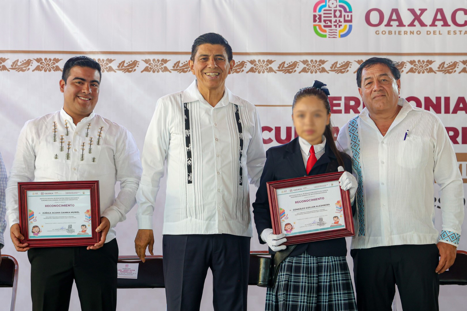 Oaxaca de Juárez, Oax. 5 de julio de 2024.- El Gobernador de Oaxaca Salomón Jara Cruz asistió a la clausura del ciclo escolar 2023-2024 de la primaria Benito Juárez, actividad donde reconoció el desempeño de las infancias por haber concluido esta etapa escolar, además de refrendar el compromiso de la Primavera Oaxaqueña por redoblar esfuerzos por la educación de la niñez.