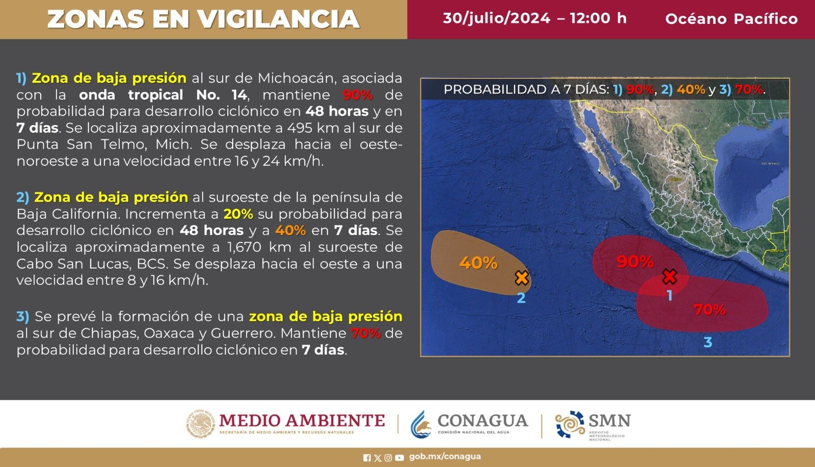 Monitorea Protección Civil canales de baja presión con probabilidad de desarrollo ciclónico en Oaxaca