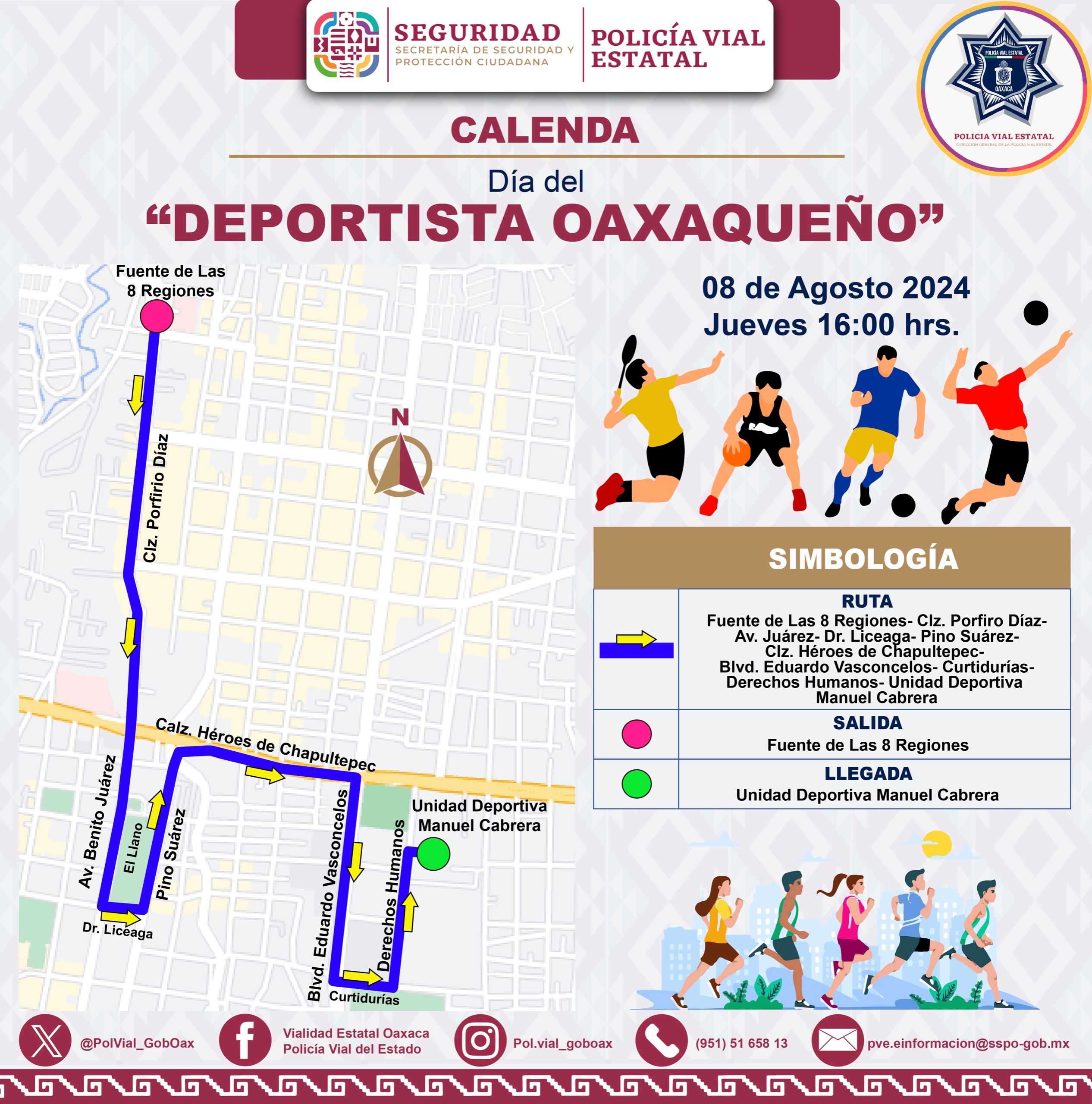 Exhorta Policía Vial tomar precauciones por calenda del Día del Deportista Oaxaqueño