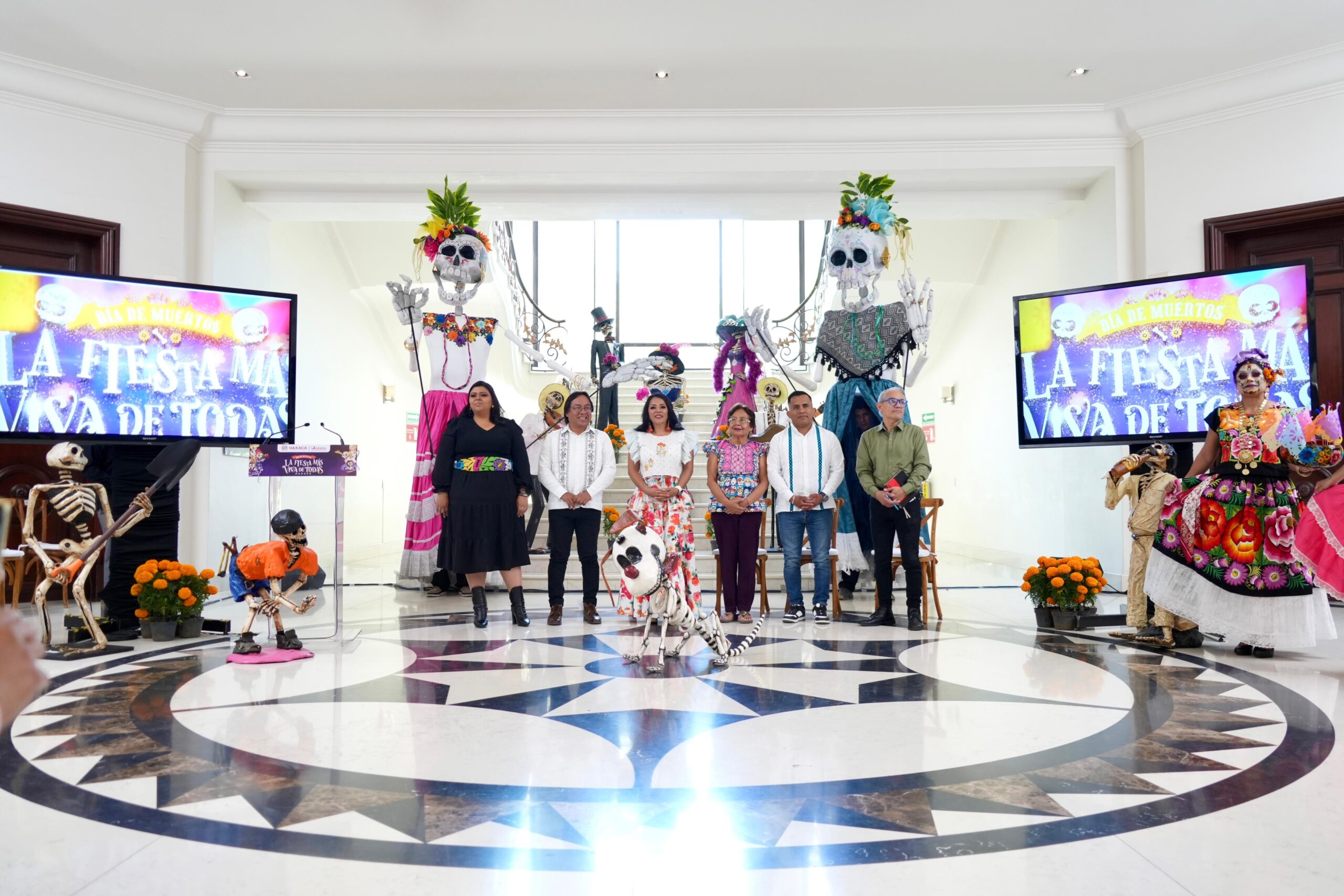 Entre estas destacó la instalación de nueve Esculturas Monumentales bajo la temática “Sendero al Mictlán”, las cuales se hallarán a partir del 26 de octubre a lo largo del Andador Turístico, la instalación de la escultura de cantera “La Catrina”, frente al Palacio de Gobierno, el 30 de octubre a las 6 de la tarde, la Verbena del Día de Muertos “Xandu´ la visita de los nuestros”.