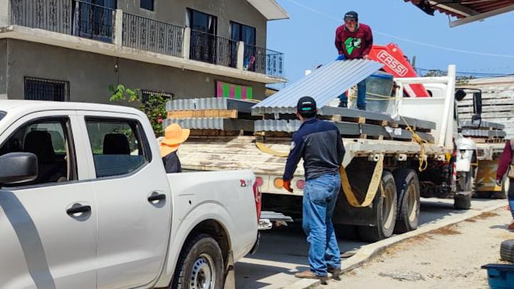 Refuerza Gobierno de Oaxaca acciones de apoyo en la Costa; entregan láminas a familias damnificadas por huracán Erick