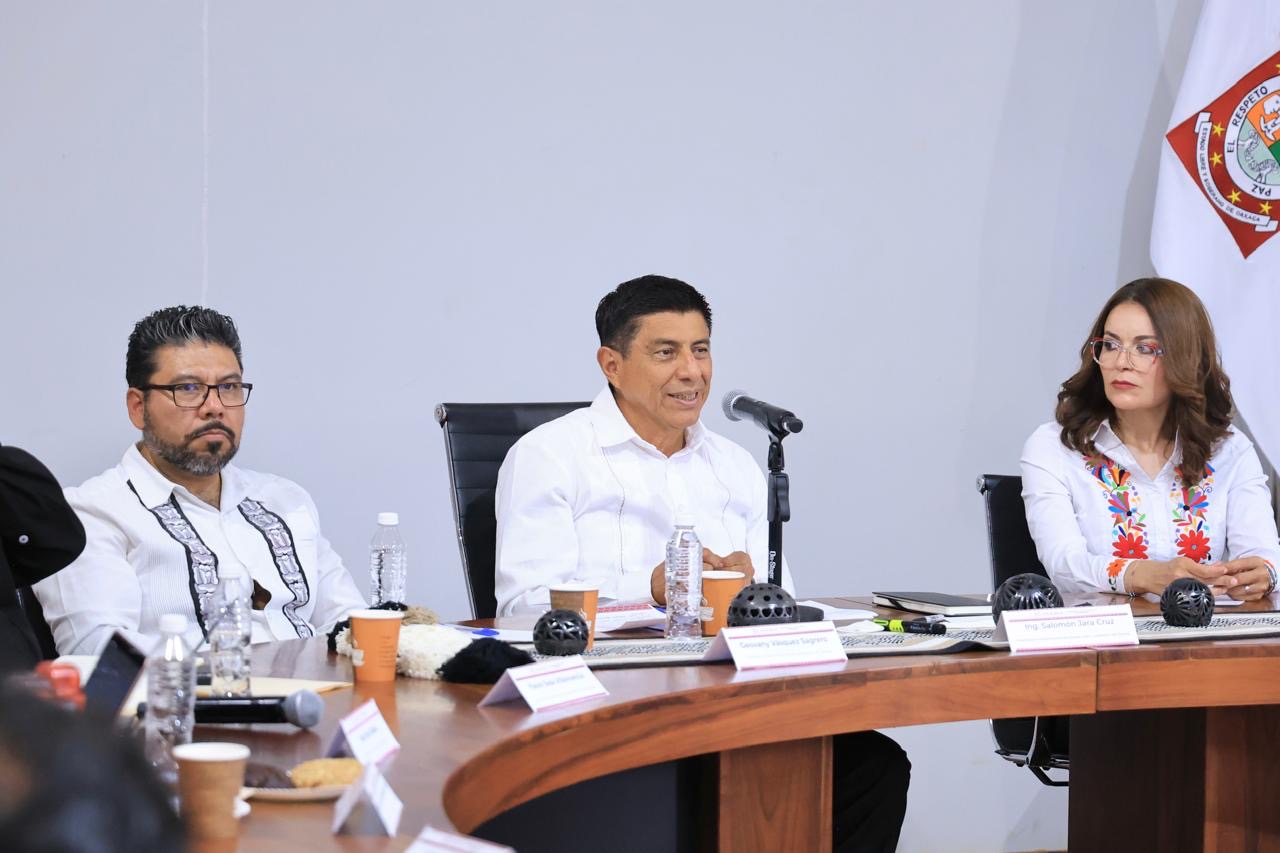 Oaxaca de Juárez, Oax. 11 de agosto de 2025.- El Gobernador Salomón Jara Cruz inició el proceso junto con autoridades municipales y personas artesanas de huaraches de Villa Hidalgo Yalálag, para registrar y proteger el diseño de este producto, así como de las marcas de los talleres locales que lo elaboran.