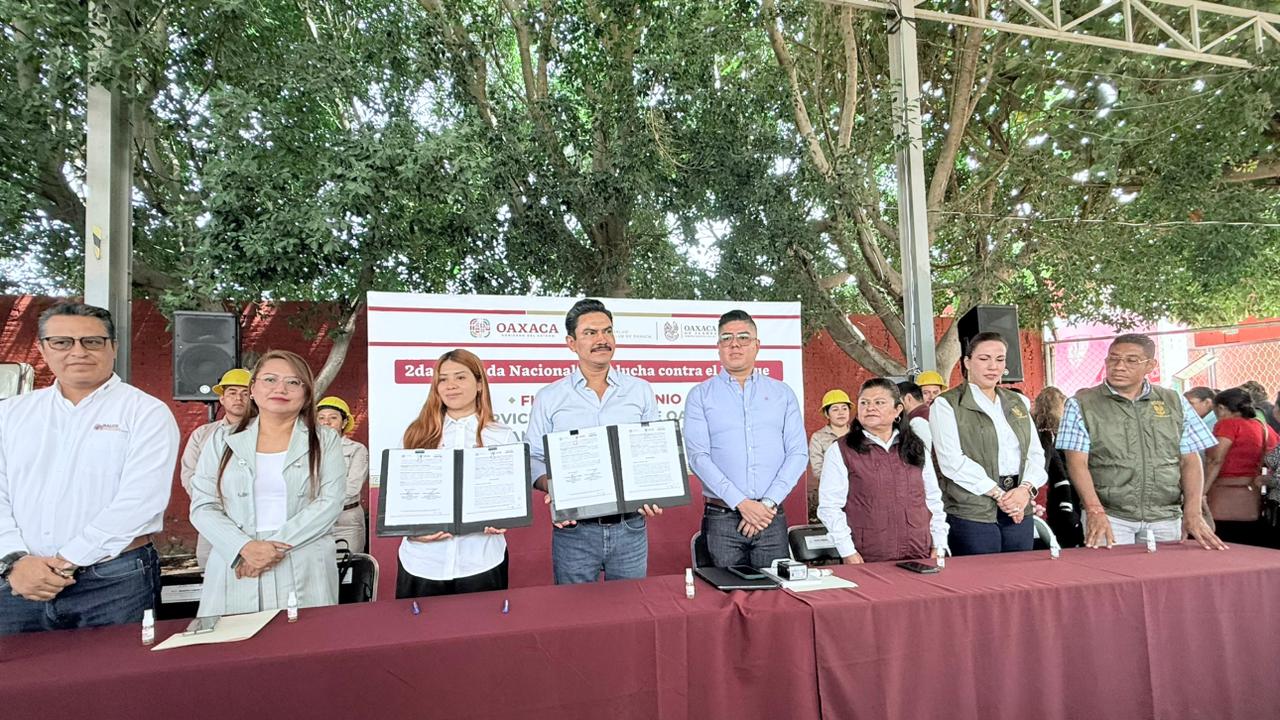 “Con la firma de este convenio, el Gobierno del Estado y el municipio de Oaxaca de Juárez consolidamos una alianza estratégica para prevenir y controlar el dengue, una enfermedad que sigue representando un desafío sanitario para nuestras comunidades”, afirmó en la actividad efectuada en el Fraccionamiento Los Cedros de la agencia municipal de Santa Rosa Panzacola.