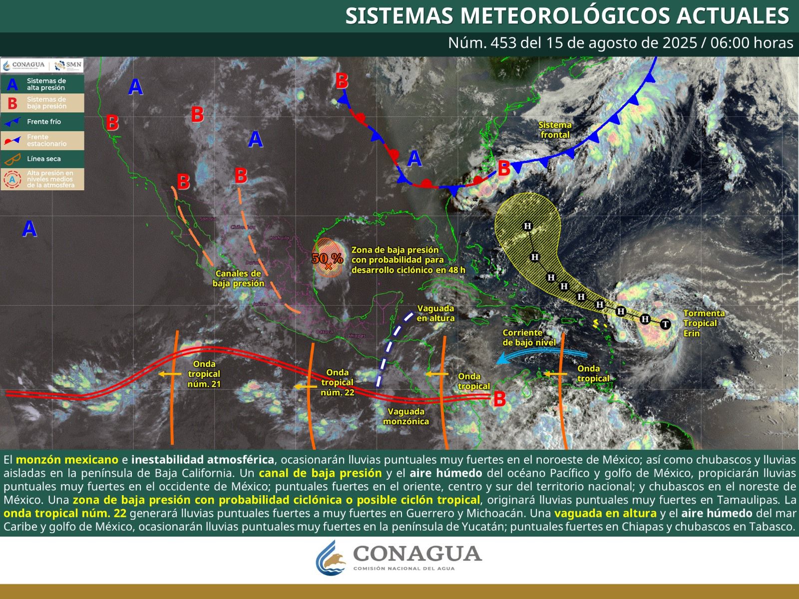 Oaxaca de Juárez, Oax. 15 de agosto de 2025.- La Coordinación Estatal de Protección Civil y Gestión de Riesgos (CEPCyGR) informa que se esperan lluvias en la mayor parte de la entidad, principalmente tormentas de corta duración y rápido desplazamiento sobre la Mixteca y Sierra Sur, donde también es probable se registren fuertes chubascos y rachas de viento sin descartar caída de granizo.