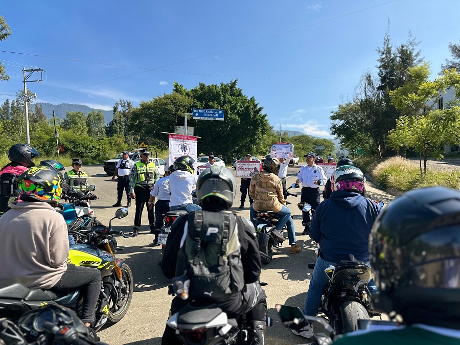 Promueve Policía Vial Estatal cultura de prevención y seguridad a motociclistas en la carretera Oaxaca-Ixtlán