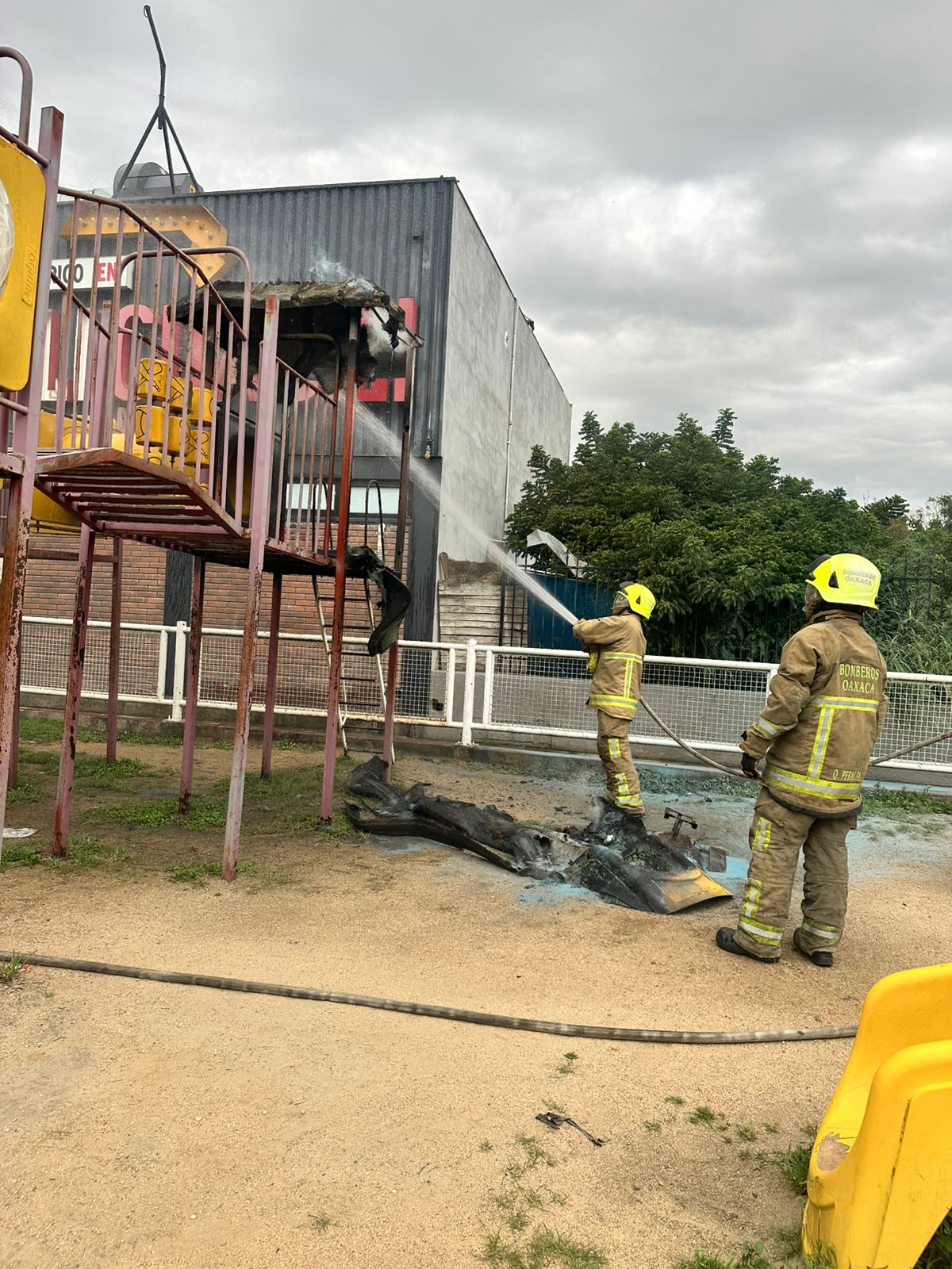 Atiende Heroico Cuerpo de Bomberos incendio en área de juegos en Candiani