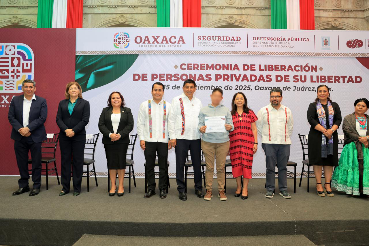 Oaxaca de Juárez, Oax. 15 de septiembre de 2025.- En un acto de humanismo y justicia, el gobierno que encabeza Salomón Jara Cruz entregó, de manera simbólica, seis constancias de liberación a personas privadas de la libertad indígenas y de escasos recursos; con lo que suman 819 en lo que va de su administración.