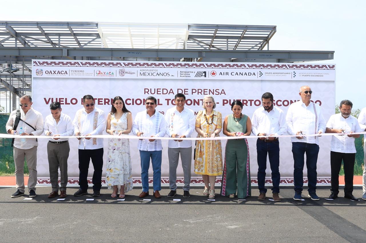 Anuncia Salomón Jara nueva ruta aérea internacional Toronto-Puerto Escondido que abre oportunidades con Canadá