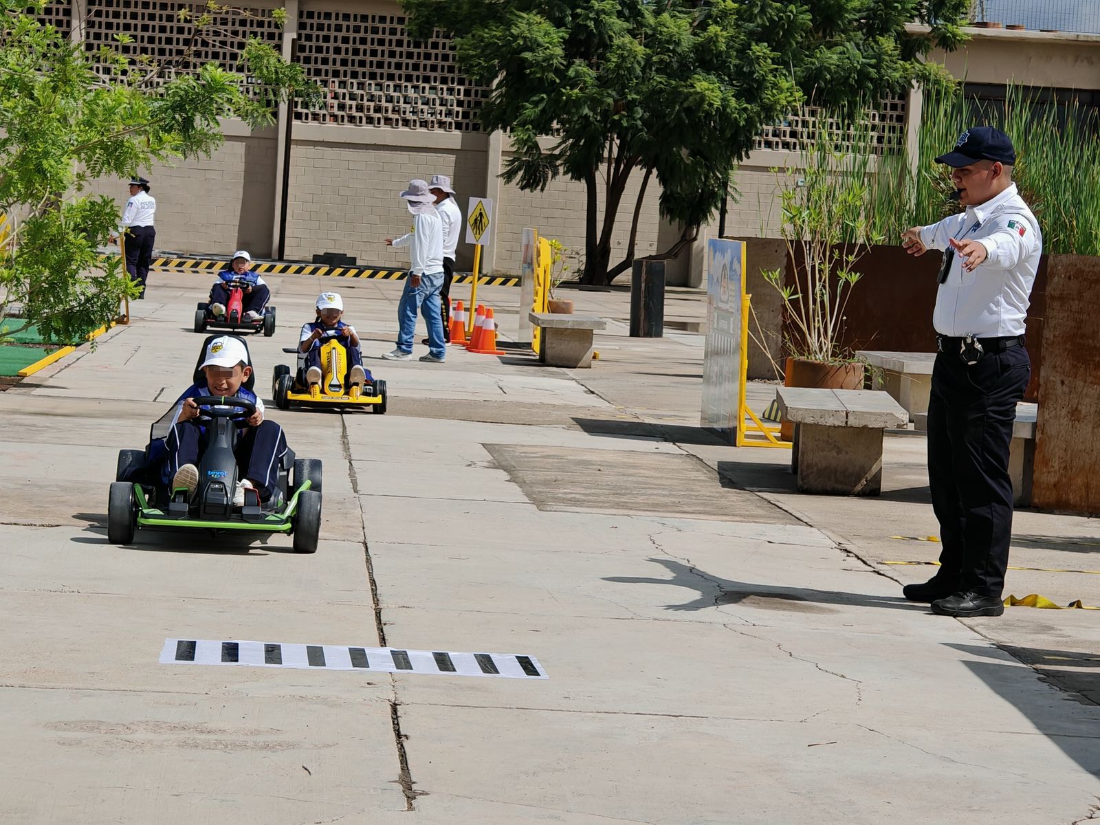 Como parte de esta estrategia, personal de la corporación encabezada por Toribio López Sánchez ofrece pláticas de educación vial e instala un circuito infantil, donde las y los participantes conocen de forma práctica las normas básicas de tránsito y el uso adecuado de los espacios públicos.