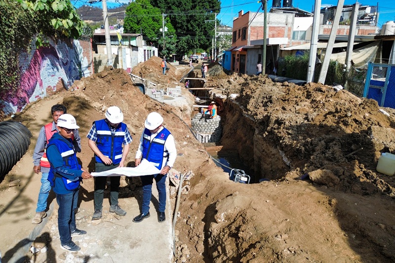 Oaxaca de Juárez, Oax. 28 de noviembre de 2025.- El Sistema Operador de los Servicios de Agua Potable y Alcantarillado (Soapa) avanza con la rehabilitación del colector y la red sanitaria de las avenidas Juventino Rosas y Miguel Hidalgo, ubicadas en la agencia de San Martín Mexicapam de Cárdenas del municipio de Oaxaca de Juárez.